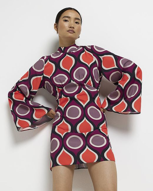 River Island Printed Flute Sleeves Mini Dress In Orange Lyst Uk